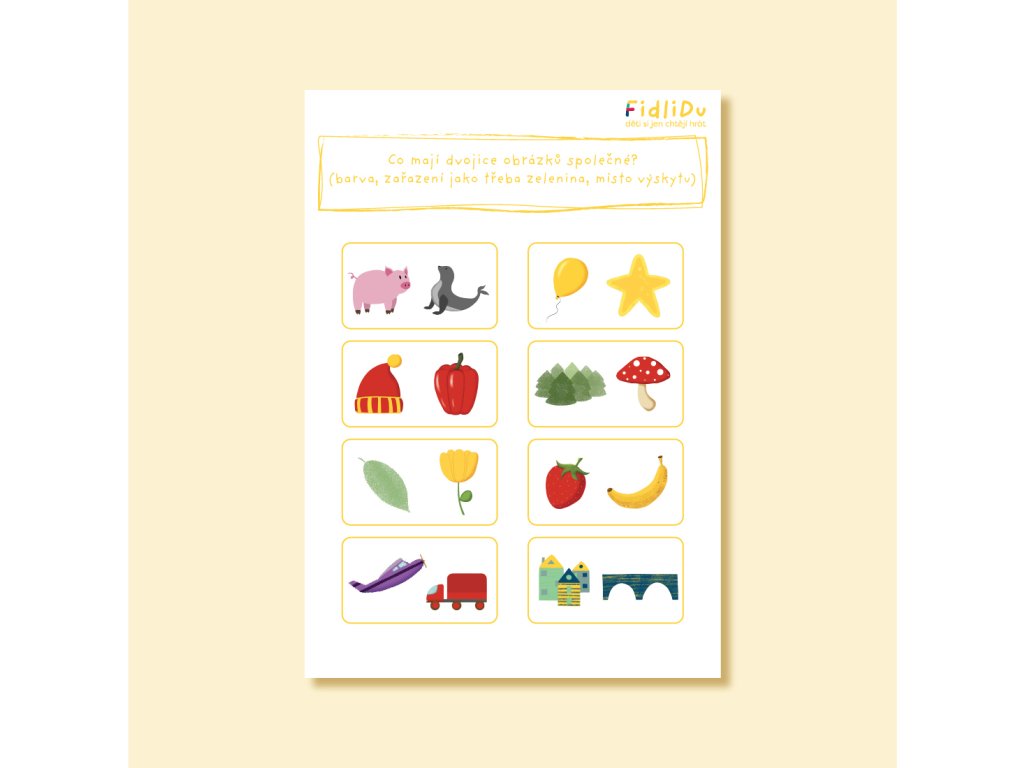 - 2x dvojice obrázků, která má něco společné a dítě má vysvětlit, co